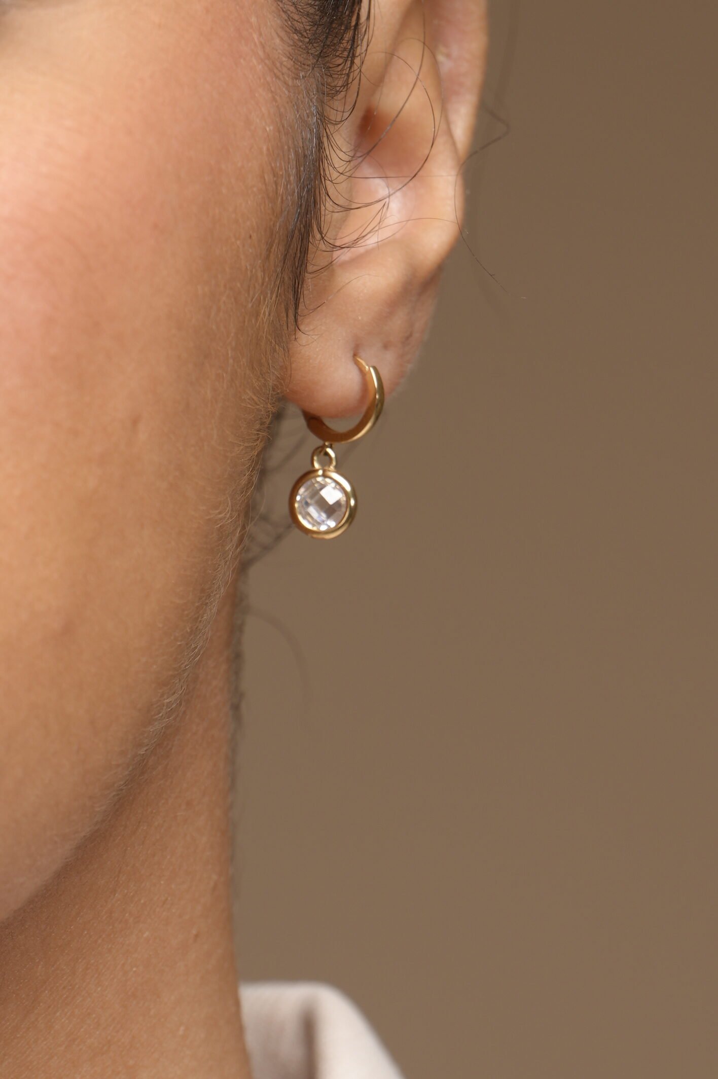 Nouria, qui signifie « lumière » en arabe, illumine chaque mouvement. Ces boucles délicates associent un anneau doré à l’or fin 18K et un pendentif zircon scintillant, qui capte la lumière avec subtilité.