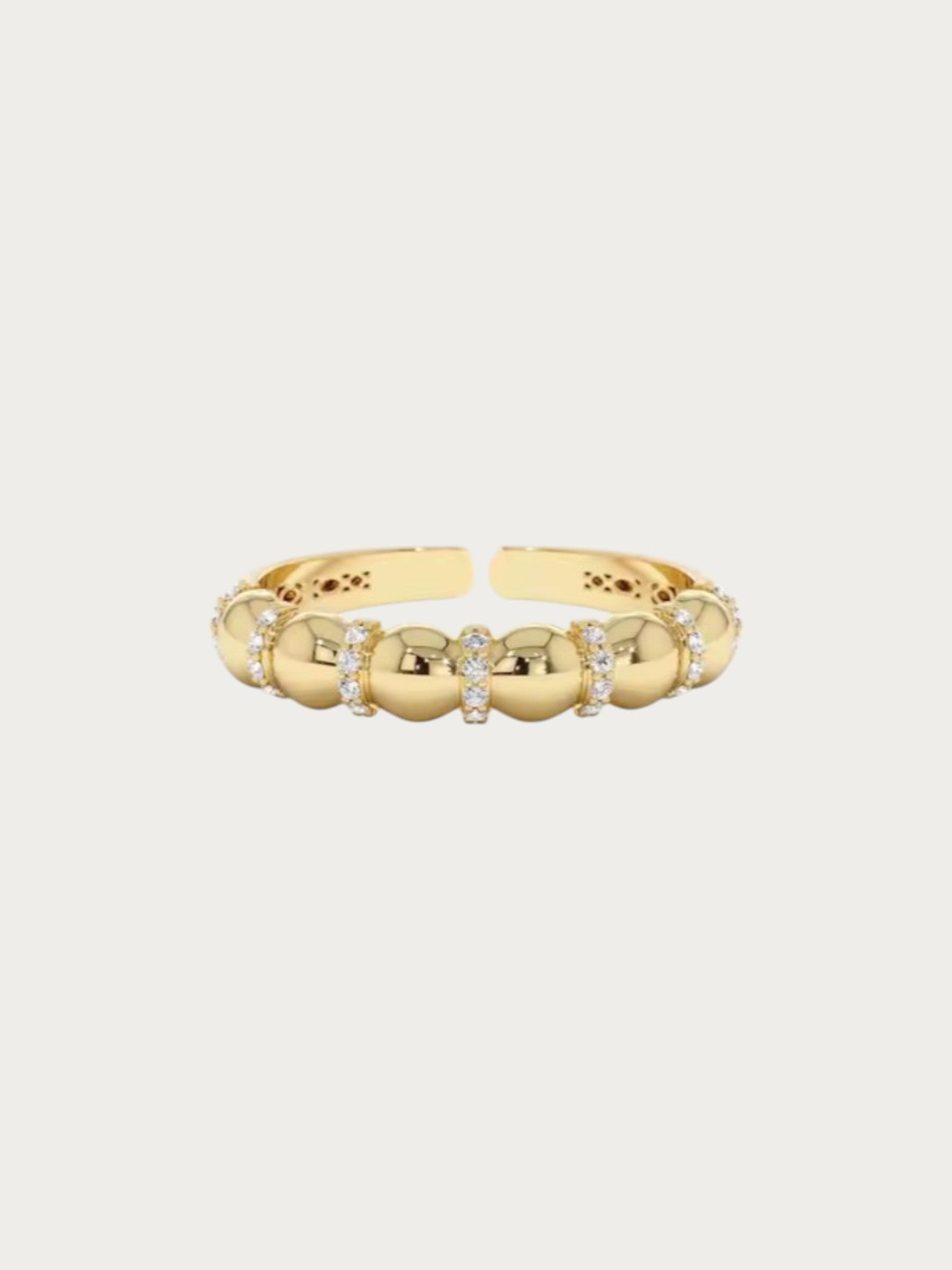 Nuraj révèle la finesse d’un anneau doré orné de détails circulaires délicats. Ajustable et légère, elle se porte seule ou associée aux boucles Nuraj pour une allure harmonieuse et sophistiquée.