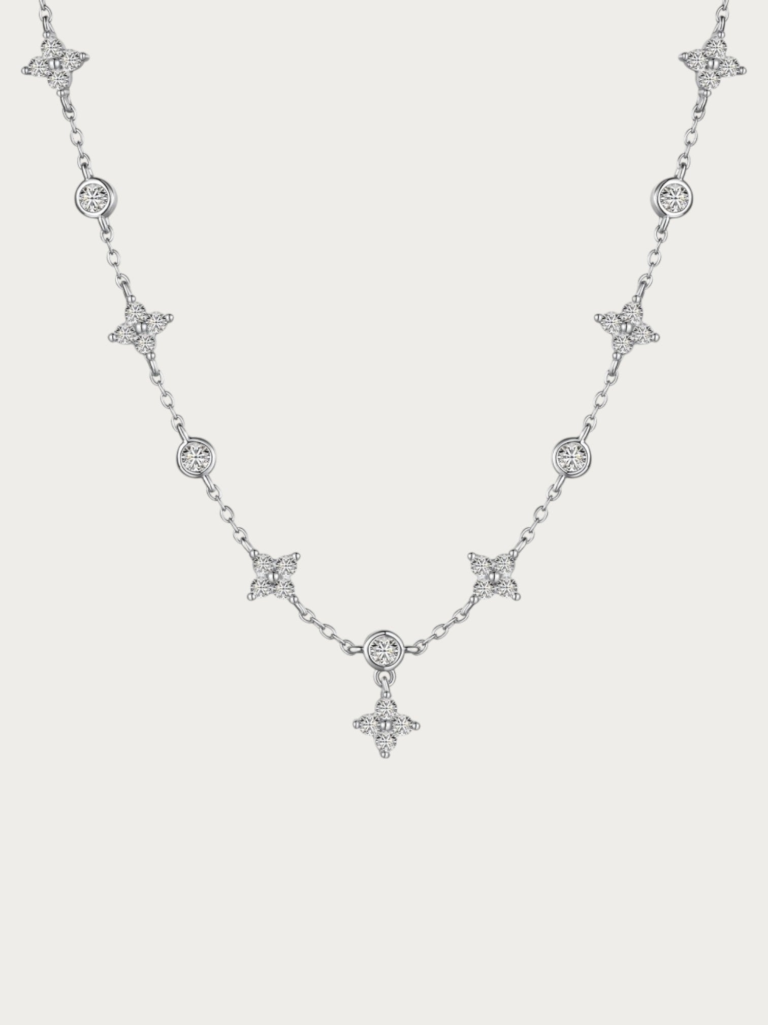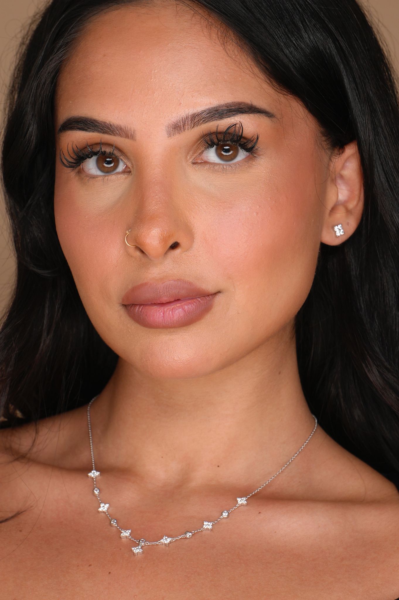 Délicat et raffiné, le collier Lyna habille le décolleté avec ses cristaux scintillants et ses motifs étoilés, comme une fine constellation posée sur la peau. À porter seul pour une touche subtile ou assorti aux boucles et bracelet Lyna pour une parure poétique.